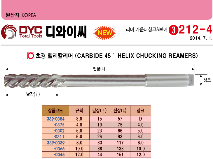 [DYC] Ãʰæ Ç︮Į¸®¸Ó(45µµ, »çÀÌÁî ¼±Åð¡´É : 3.0~12.0mm)(CARBIDE 45¡ÆHELIX CHUCKING REAMER)(ÁÖ¹®Àü Àç°íÈ®ÀÎ)