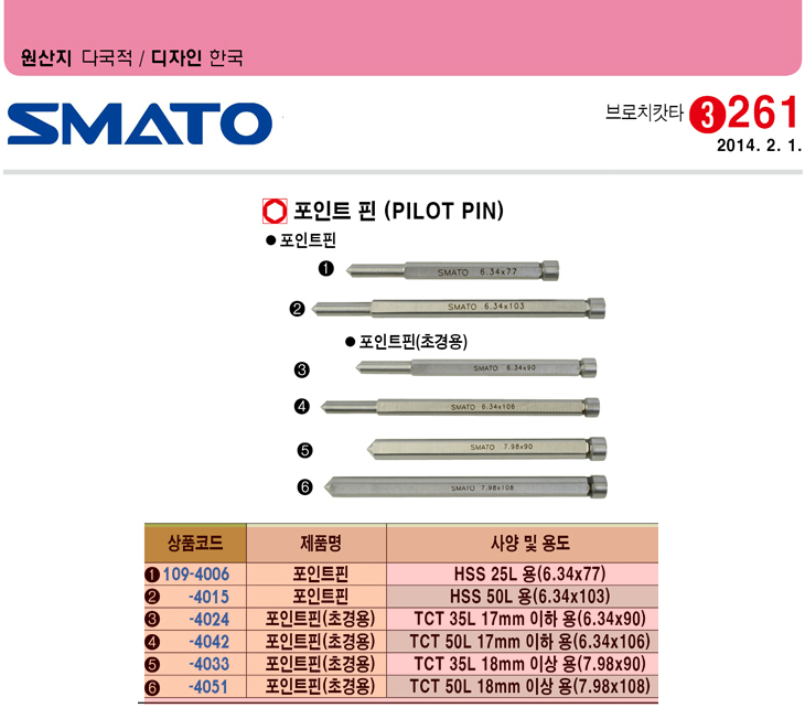 [SMATO] ½º¸¶Åä Æ÷ÀÎÆ®ÇÉ(HSS 50L¿ë, 6.34x103mm)(Pilot Pin)