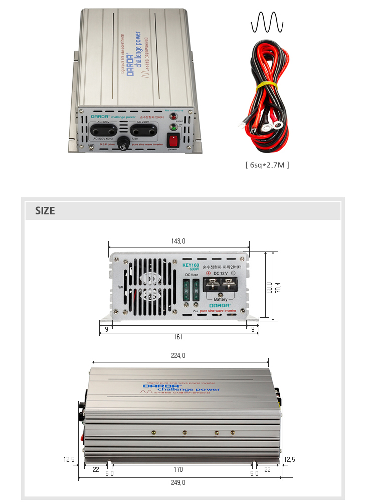 [DARDA] ´Ù¸£´Ù DC/ACÀιöÅÍ(KEY160, ÀÔ·Â:12VDC/Ãâ·Â:220VAC 600Watt, Á¤ÇöÆÄ ÀιöÅÍ)(DC to AC Inverter)(ÁÖ¹®Àü Àç°íÈ®ÀÎ)