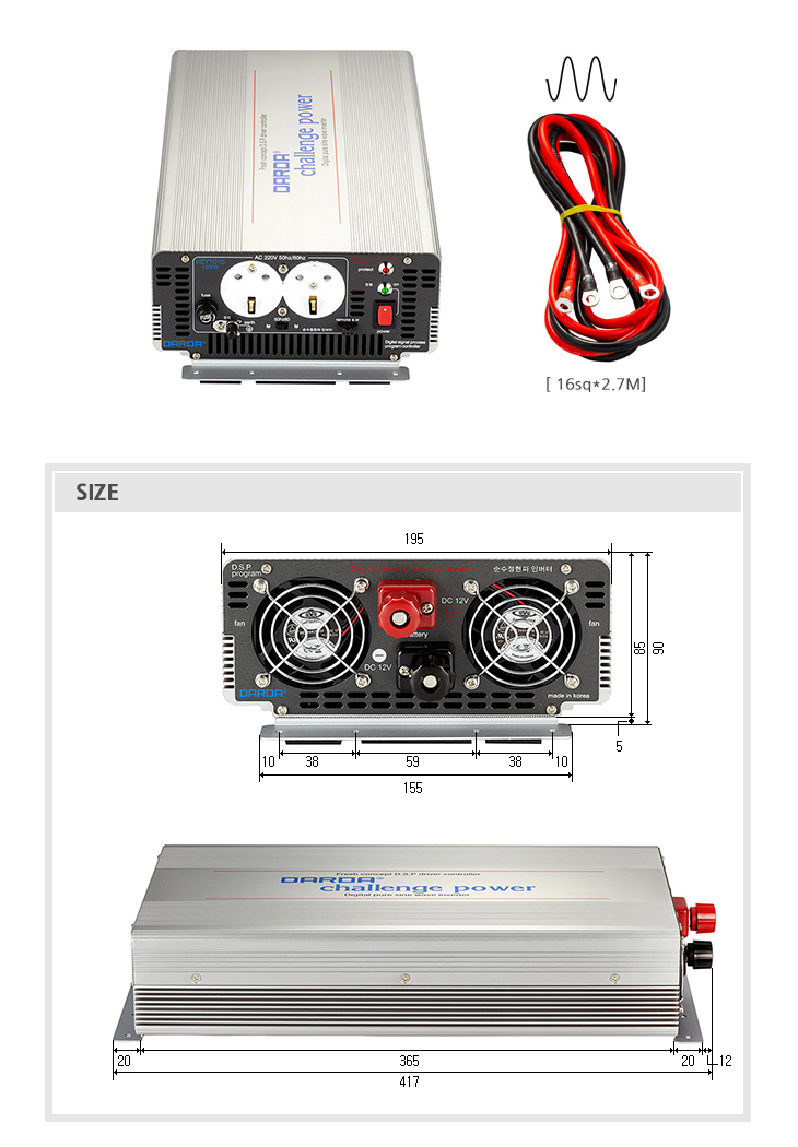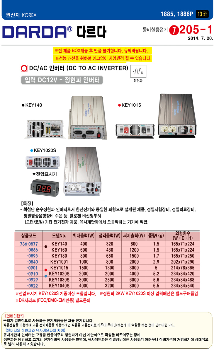 [DARDA] ´Ù¸£´Ù DC/ACÀιöÅÍ(KEY1015, ÀÔ·Â:12VDC/Ãâ·Â:220VAC 1500Watt, Á¤ÇöÆÄ ÀιöÅÍ)(DC to AC Inverter)(ÁÖ¹®Àü Àç°íÈ®ÀÎ)