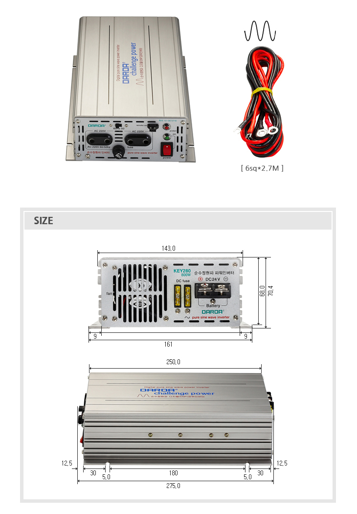 [DARDA] ´Ù¸£´Ù DC/ACÀιöÅÍ(KEY280, ÀÔ·Â:24VDC/Ãâ·Â:220VAC 800Watt, Á¤ÇöÆÄ ÀιöÅÍ)(DC to AC Inverter)(ÁÖ¹®Àü Àç°íÈ®ÀÎ)