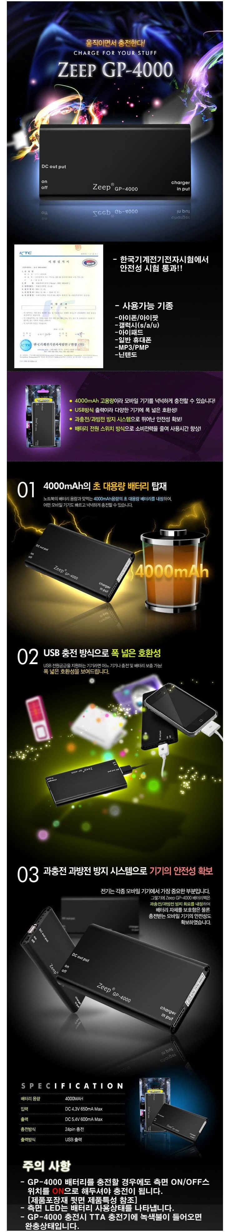 [COMS] ¿Í¿ì¿£Á¶ÀÌ ºñ»ó ÃæÀü±â(GP-4000, 4000mAh)(¹èÅ͸®³»Àå)
