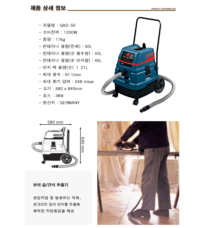 [BOSCH] º¸½¬ Áø°øÃ»¼Ò±â(GAS 50, °Ç½À½Ä, 50¸®ÅÍ/1200Watt)(VACUUM CLEANER)=>Á¦Ç°´ÜÁ¾!