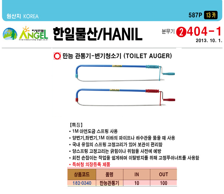 [ÇÑÀϹ°»ê] ¸¸´É °üÅë±â-º¯±âû¼Ò±â (1¹ÌÅÍ, ¾Æ¿¬µµ±Ý½ºÇÁ¸µ, ½ºÇÁ¸µ °íÁ¤°ÉÀÌ)(TOILET AUGER)