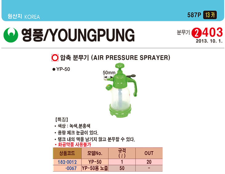 [¿µÇ³] ¾ÐÃàºÐ¹«±â(YP-50¿ë ³ëÁñ)(Air Pressure Sprayer)
