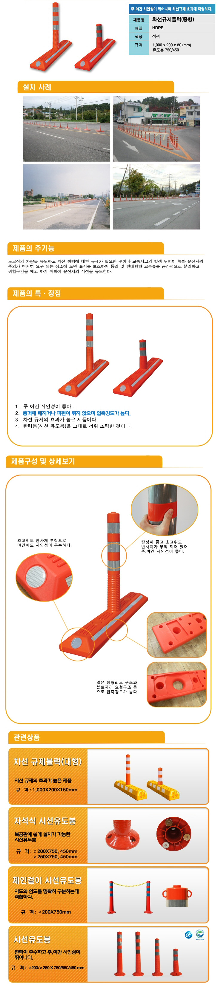 [HQ]ÁßÇü Â÷¼±±ÔÁ¦ºí·°(º»Ã¼L1000xW200xH80, ºÀ³ôÀÌ750mm)(Traffic Lane Block/Lane Separator Block)