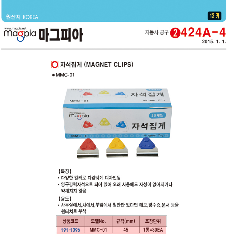 [¸¶±×ÇǾÆ] ÀÚ¼®Áý°Ô(MMC-01, 45mm x 30EA)(Magnet Clips)
