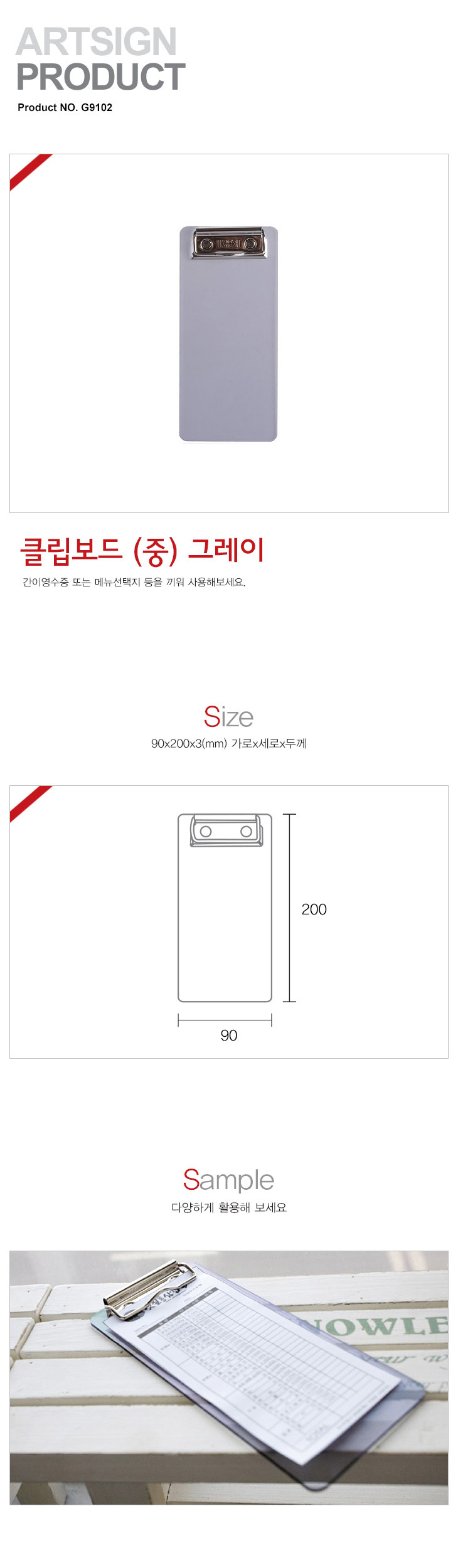 [¾ÆÆ®] Ŭ¸³º¸µå (G9102, Áß, ±×·¹ÀÌ, 90x200x3mm, ¾ÆÅ©¸±+ö)