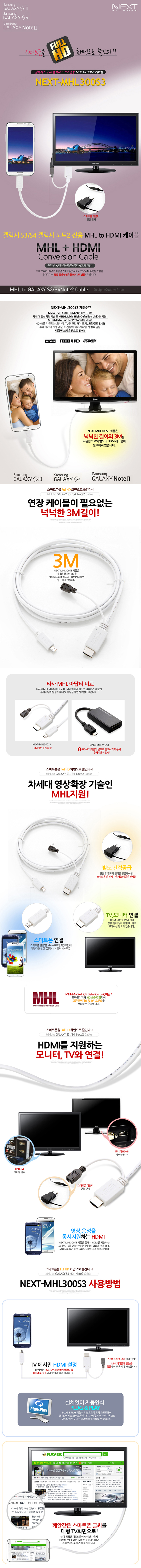 [SL] ³Ø½ºÆ® MHL to HDMI Cable - °¶·°½ÃS3/S4/³ëÆ®2 Àü¿ë(NEXT-MHL300S3, ÈÞ´ëÆù ¿µ»ó ¡æ HD TV, 3¹ÌÅÍ, Full HD 1080P)