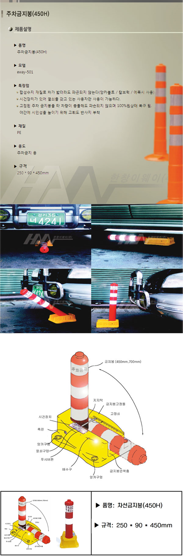 [HC] ÁÖÂ÷±ÝÁöºÀ/ÁÖÂ÷±ÝÁö´ë(250x90x450mm, PE)=>Á¦Ç°´ÜÁ¾!