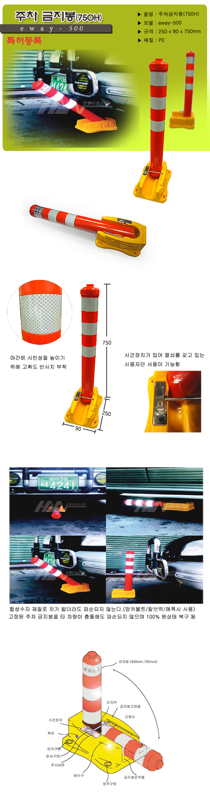 [HC] ÁÖÂ÷±ÝÁöºÀ/ÁÖÂ÷±ÝÁö´ë(250x90x750mm, PE)=>Á¦Ç°´ÜÁ¾!