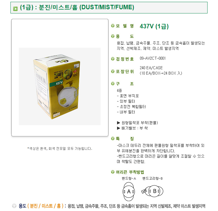 [Å©¸°Å¾]1±Þ¹æÁø¸¶½ºÅ©(437V, È£Èí¿ëÀÌ)(10°³ 1¹Ú½º)(¿ëÁ¢/³³¶«/ÁÖÁ¶/´ÜÁ¶/Á¶¼±¼Ò/±Ý¼ÓÈâ¹ß»ýÁö¿ª)(Dust respirator Mask)