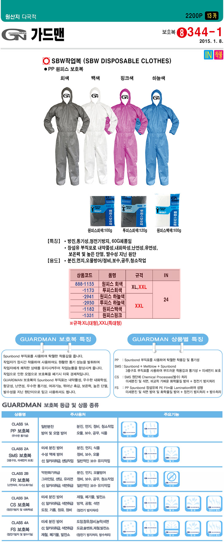 [°¡µå¸Ç] SBWÀÛ¾÷º¹/º¸È£º¹(PPº¸È£º¹, CLASS 1A, ¹æÁø/Åë±â¼º/Á¤Àü±â¹æÁö 60G, ºÐÁø/¸ÕÁö/¿À¹°¹æ¾î/Á¤ºñ/º¸¼ö/°ø¹«/û¼ÒÀÛ¾÷, 24¹ú ¹­À½)