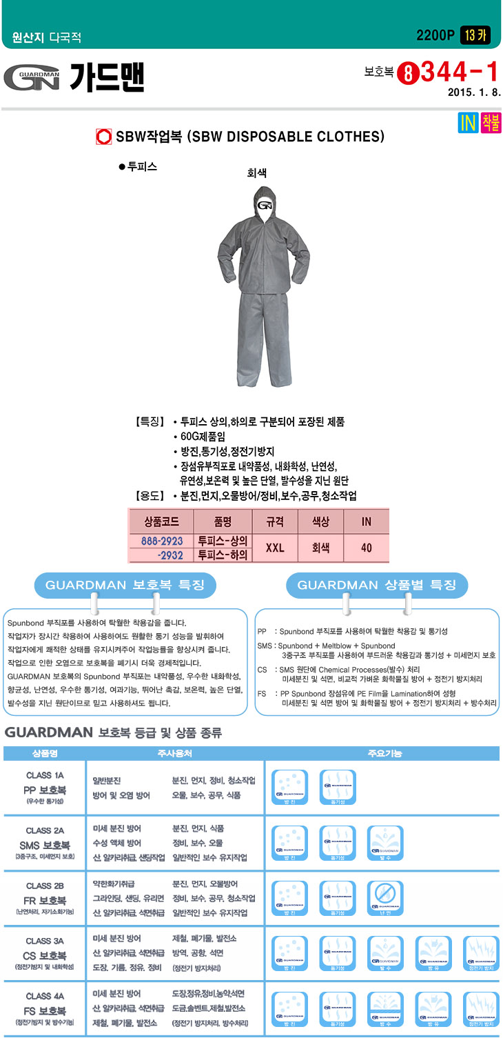 [°¡µå¸Ç] SBWÀÛ¾÷º¹/º¸È£º¹ ÅõÇǽº(PPº¸È£º¹, CLASS 1A, ¹æÁø/Åë±â¼º/Á¤Àü±â¹æÁö 60G, ºÐÁø/¸ÕÁö/¿À¹°¹æ¾î/Á¤ºñ/º¸¼ö/°ø¹«/û¼ÒÀÛ¾÷, 50¹ú ¹­À½)