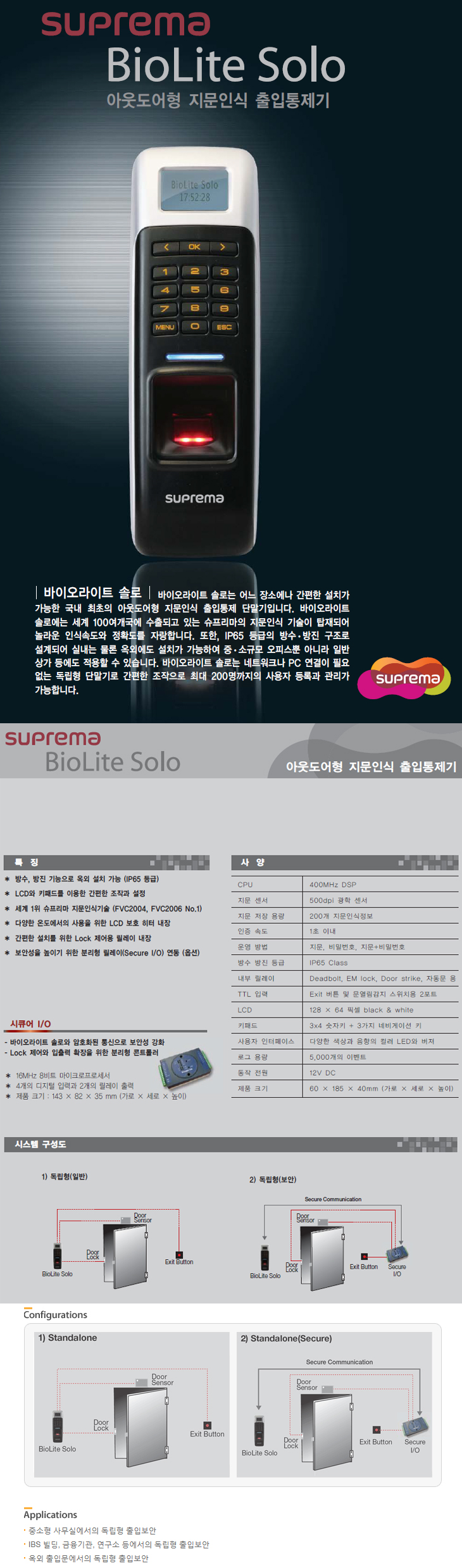 [½´ÇÁ¸®¸Ó] BioLite Solo ´Üµ¶Çü Áö¹®ÀÎ½Ä ÃâÀÔÅëÁ¦ ´Ü¸»±â(¹æ¼ö/¹æÁø, Áö¹®Àνıâ)