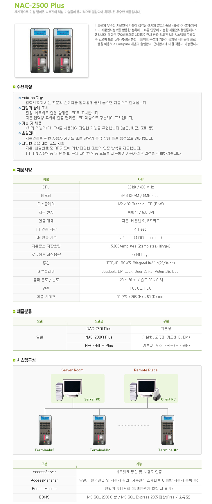 [´ÏÆ®Á¨] NAC-2500 PLUS(Standard Type, ÃâÀÔÅëÁ¦´Ü¸»±â, Áö¹®Àνıâ + RF½Ã½ºÅÛ ¼±Åð¡´É)