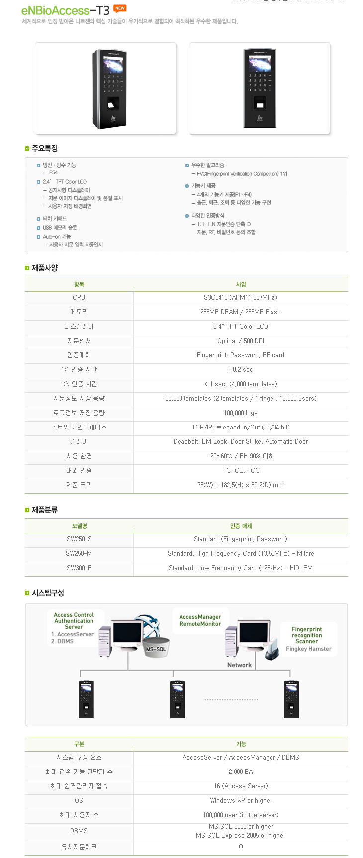 [´ÏÆ®Á¨] eNBioAccess-T3(Standard Type, ÃâÀÔÅëÁ¦´Ü¸»±â, Áö¹®Àνıâ + RF½Ã½ºÅÛ ¼±Åð¡´É)