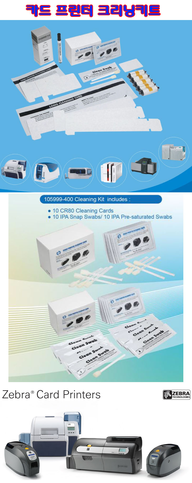 [WT] ½ÅºÐÁõÇÁ¸°ÅÍ/Ä«µåÇÁ¸°ÅÍ¿ë Å©¸®´×ŰƮ(105999-400, CR80 10¸Å+IPA½º³À ¸éºÀ 10°³+IPAÁ¥Àº ¸éºÀ 10°³)(Cleaning Kit)