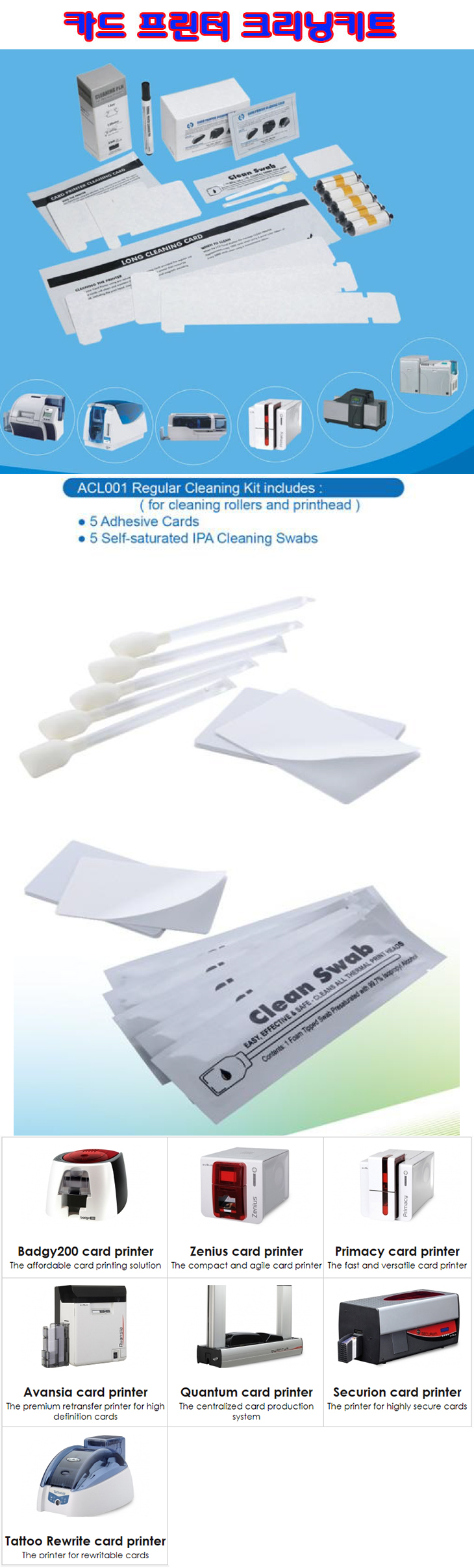 [WT] ½ÅºÐÁõÇÁ¸°ÅÍ/Ä«µåÇÁ¸°ÅÍ¿ë Å©¸®´×ŰƮ(Evolis ACL01,Á¢Âø½ÄÄ«µå5¸Å+Á¥Àº¸éºÀ5¸Å,Å©¸®´×·Ñ·¯ ¹× ÇÁ¸°Æ®Çìµå¿ë)(Regular Cleaning Kit)