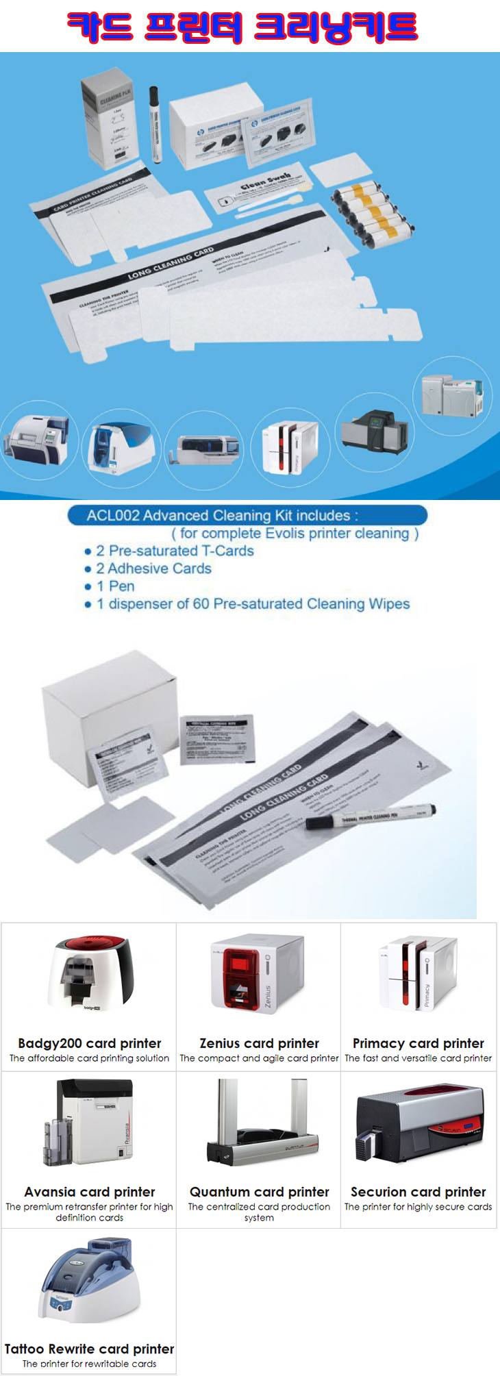 [WT] ½ÅºÐÁõÇÁ¸°ÅÍ/Ä«µåÇÁ¸°ÅÍ¿ë Å©¸®´×ŰƮ(Evolis ACL02,Á¥ÀºT-Ä«µå2¸Å+Á¢Âø½ÄÄ«µå2¸Å+Ææ1°³+Á¥ÀºWipe60¸Å)(Advanced Regular Cleaning Kit)