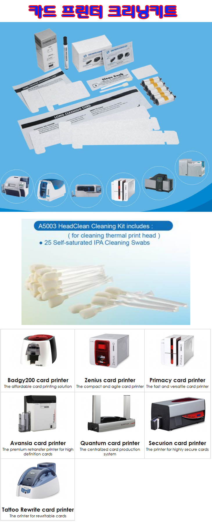 [WT] ½ÅºÐÁõÇÁ¸°ÅÍ/Ä«µåÇÁ¸°ÅÍ¿ë Å©¸®´×¸éºÀ(Evolis A5003,Á¥Àº¸éºÀ25°³)(HeadClean Cleaning Swab)