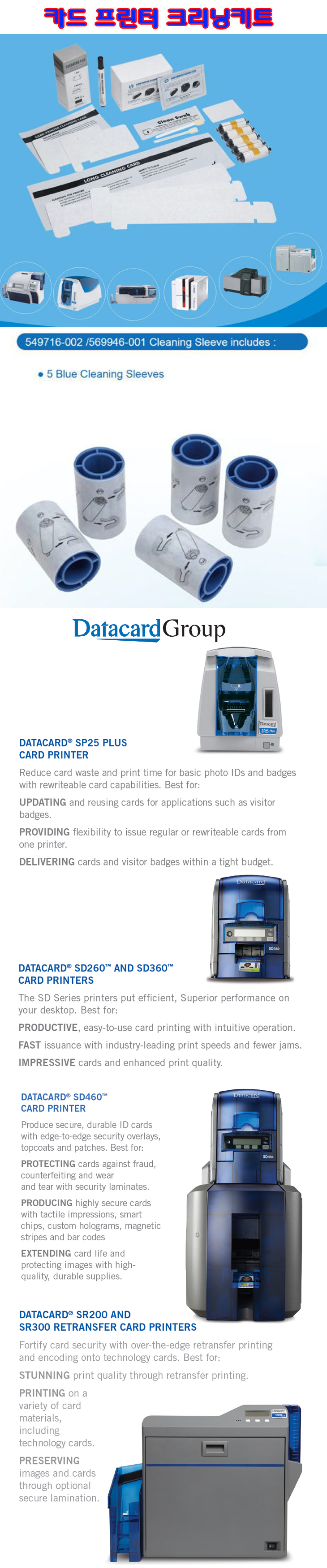 [WT] ½ÅºÐÁõÇÁ¸°ÅÍ/Ä«µåÇÁ¸°ÅÍ¿ë Å©¸®´×½½¸®ºê(Datacard 549716-002/569946-001,ºí·ç Å©¸®´× ½½¸®ºê5°³)(Cleaning Sleeves)