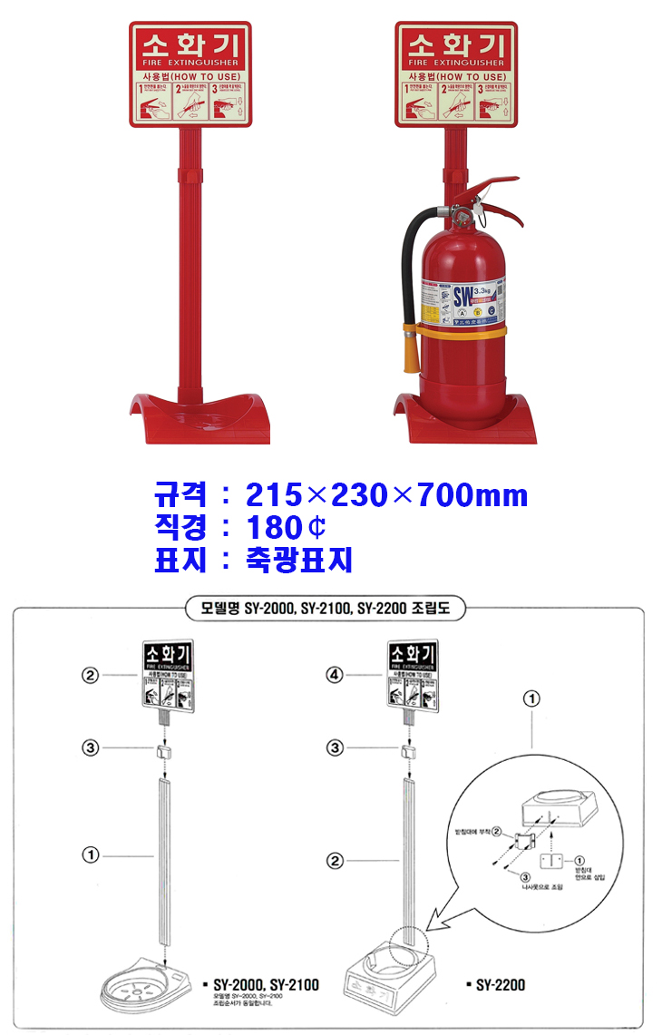 [SY] PP¼ÒÈ­±â°ÅÄ¡´ë(215x230x700mm, Àû»ö, SY-2100)