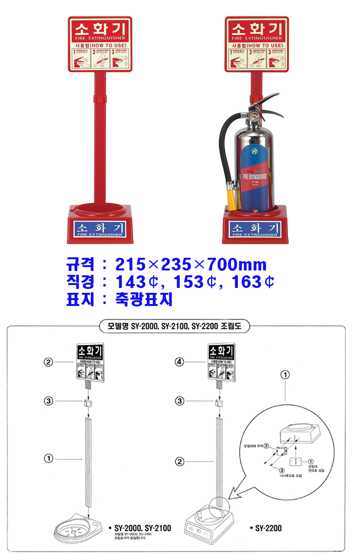 [SY] PP¼ÒÈ­±â°ÅÄ¡´ë(215x235x700mm, Àû»ö, SY-2200)