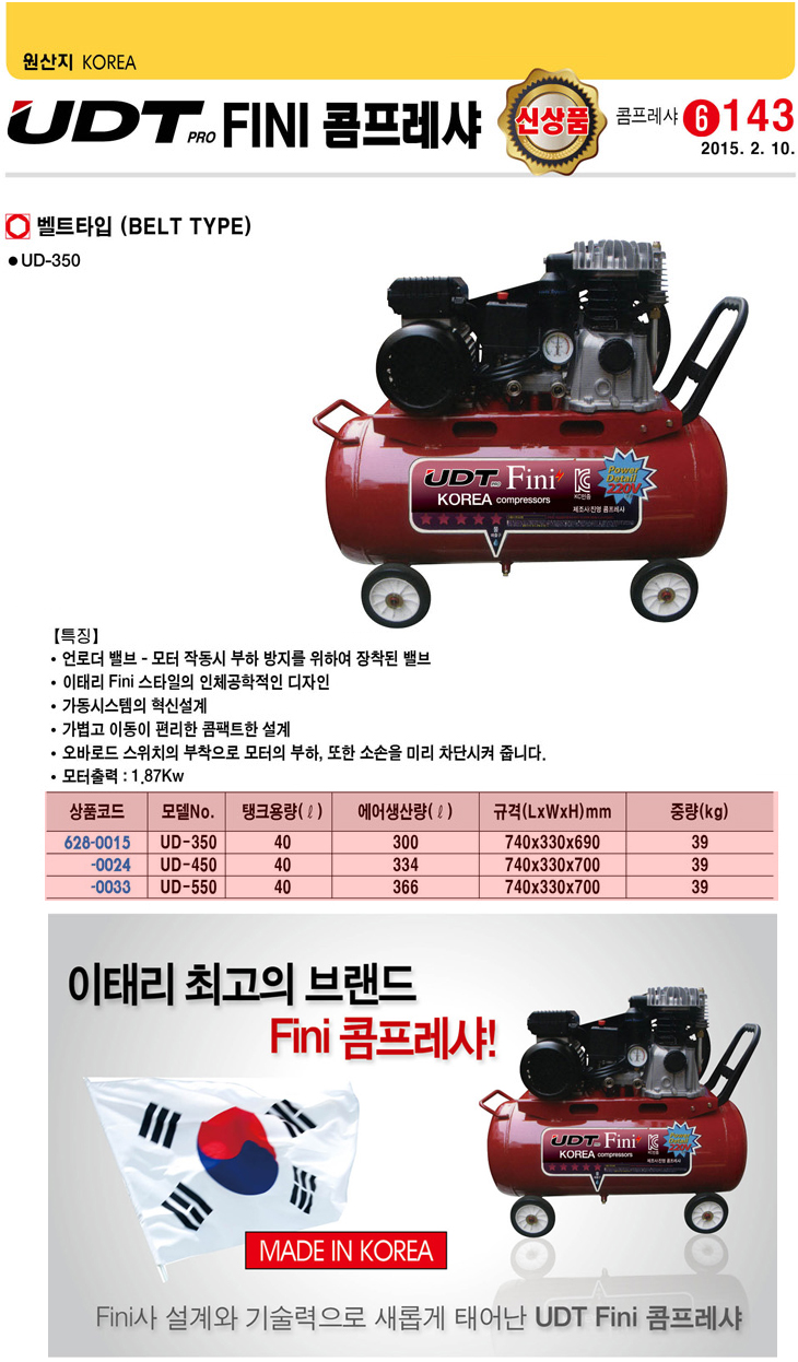 [UDT] º§Æ®Å¸ÀÔ FINI ÄÞÇÁ·¹»þ/UDT FINIÄÄÇÁ·¹¼­(UD-450, 40¸®ÅÍ)(Belt Type UDT FINI Compressor)