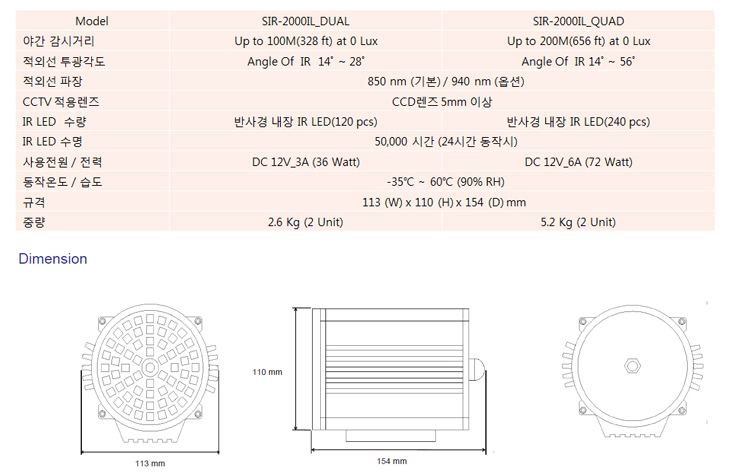 • IR LED ¼ö¸í 50,000 Hour