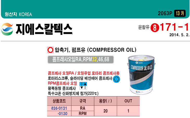 [GSĮŨ½º] ÄÞÇÁ·¹»þ ¿ÀÀÏ(RA 32#, 20¸®ÅÍ, ¿Õº¹µ¿Çü ¾ÐÃà±âÀ¯/ÆßÇÁÀ¯)(Compressor Oil)(ÁÖ¹®Àü Àç°íÈ®ÀÎ)