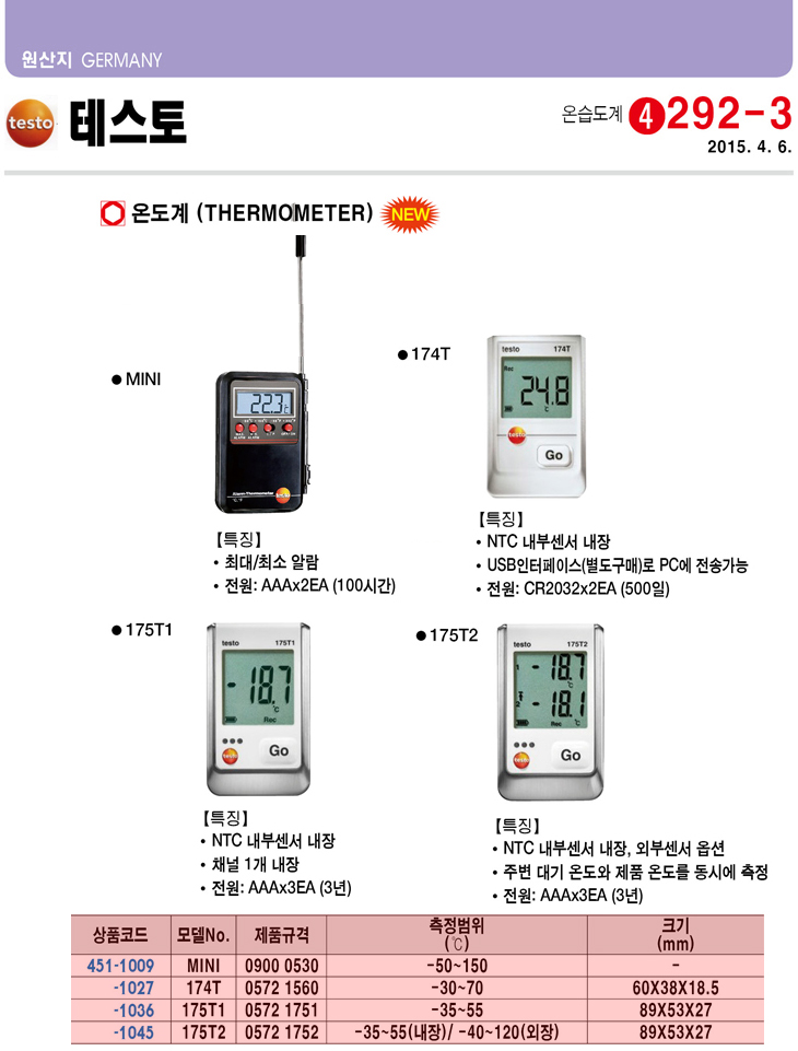 [Å×½ºÅä] TESTO ¿Âµµ°è(174T, 0572 1560, -30~70¡É)(Thermometer)(ÁÖ¹®Àü Àç°íÈ®ÀÎ)