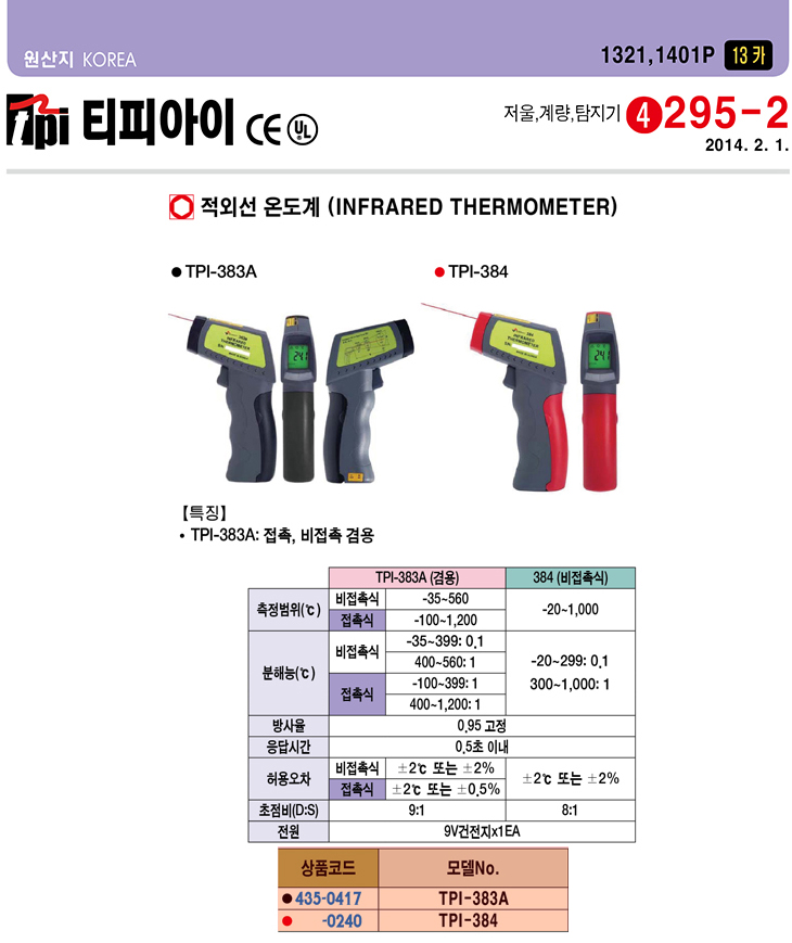 [ƼÇǾÆÀÌ] TPI Àû¿Ü¼± ¿Âµµ°è(TPI-384, ºñÁ¢Ã˽Ä:-20~1000¡É)(Infrared Thermometer)