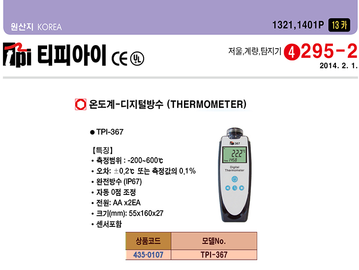 [ƼÇǾÆÀÌ] TPI µðÁöÅ» ¹æ¼ö(TPI-367, -200~600¡É)(Thermometer)