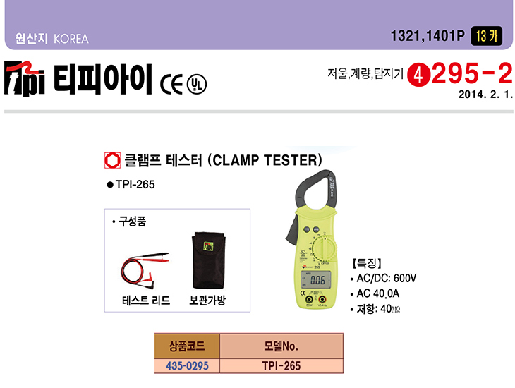 [ƼÇǾÆÀÌ] TPI Ŭ·¥ÇÁ Å×½ºÅÍ(TPI-265)(Digital Tester)(ÁÖ¹®Àü Àç°íÈ®ÀÎ)