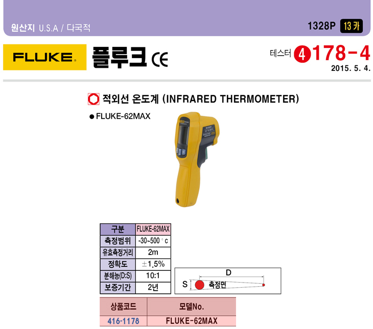 [Ç÷çÅ©/FLUKE] Àû¿Ü¼±¿Âµµ°è(FLUKE-62MAX, -30~500¡É)(Infrared Thermometer)