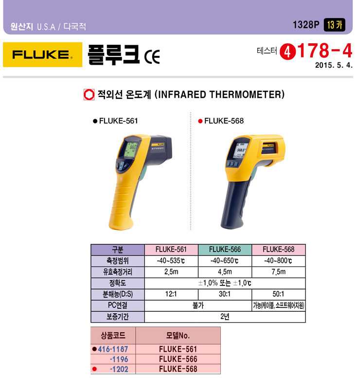 [Ç÷çÅ©/FLUKE] Àû¿Ü¼±¿Âµµ°è(FLUKE-566, -40~650¡É)(Infrared Thermometer)
