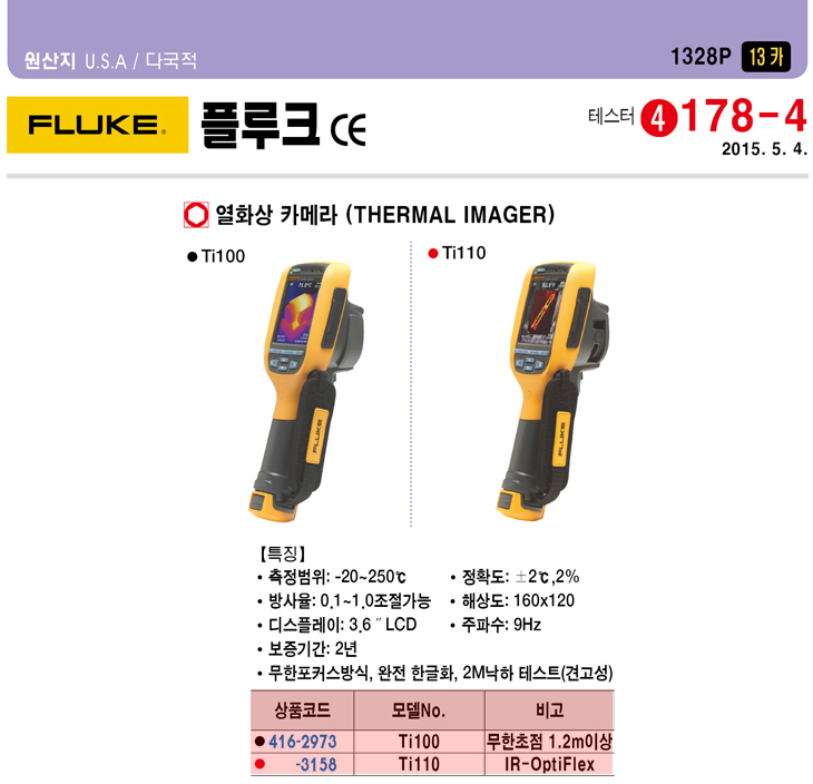 [Ç÷çÅ©/FLUKE] ¿­È­»óÄ«¸Þ¶ó(FLUKE Ti100, -20~250¡É)(Infrared Thermometer)
