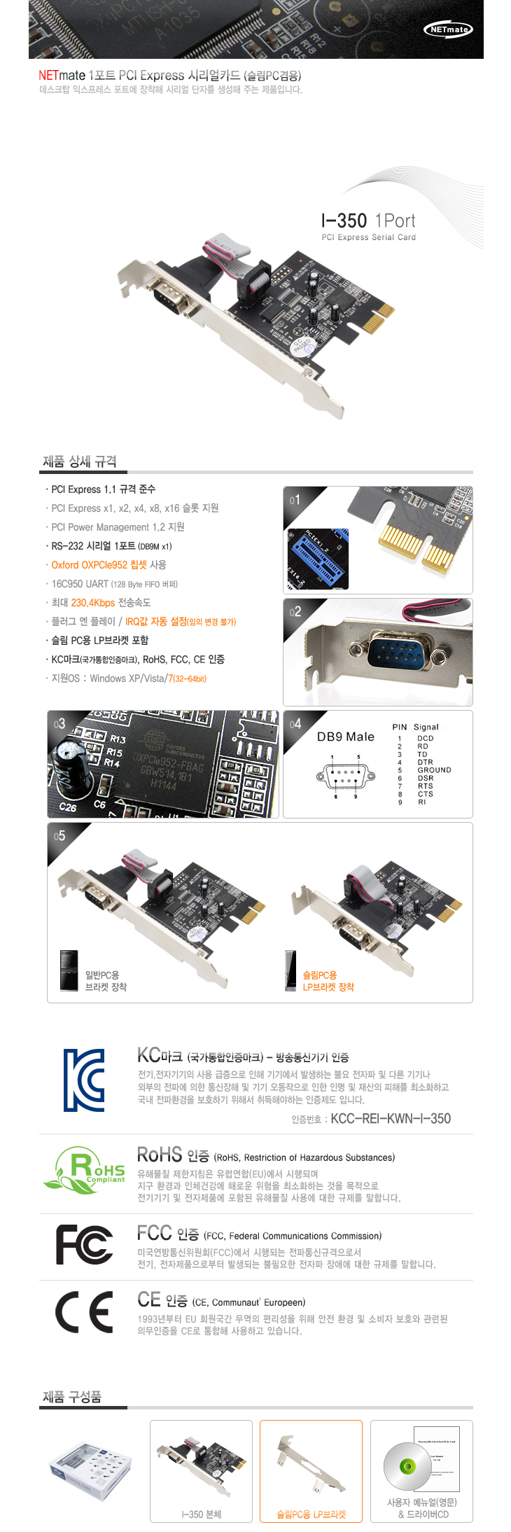[³Ý¸ÞÀÌÆ®/KW] NETmate RS-232C 1Æ÷Æ® PCI Express ½Ã¸®¾óÄ«µå(I-350, Oxford OXPCIe952 Ĩ¼Â, ½½¸²PC°â¿ë)