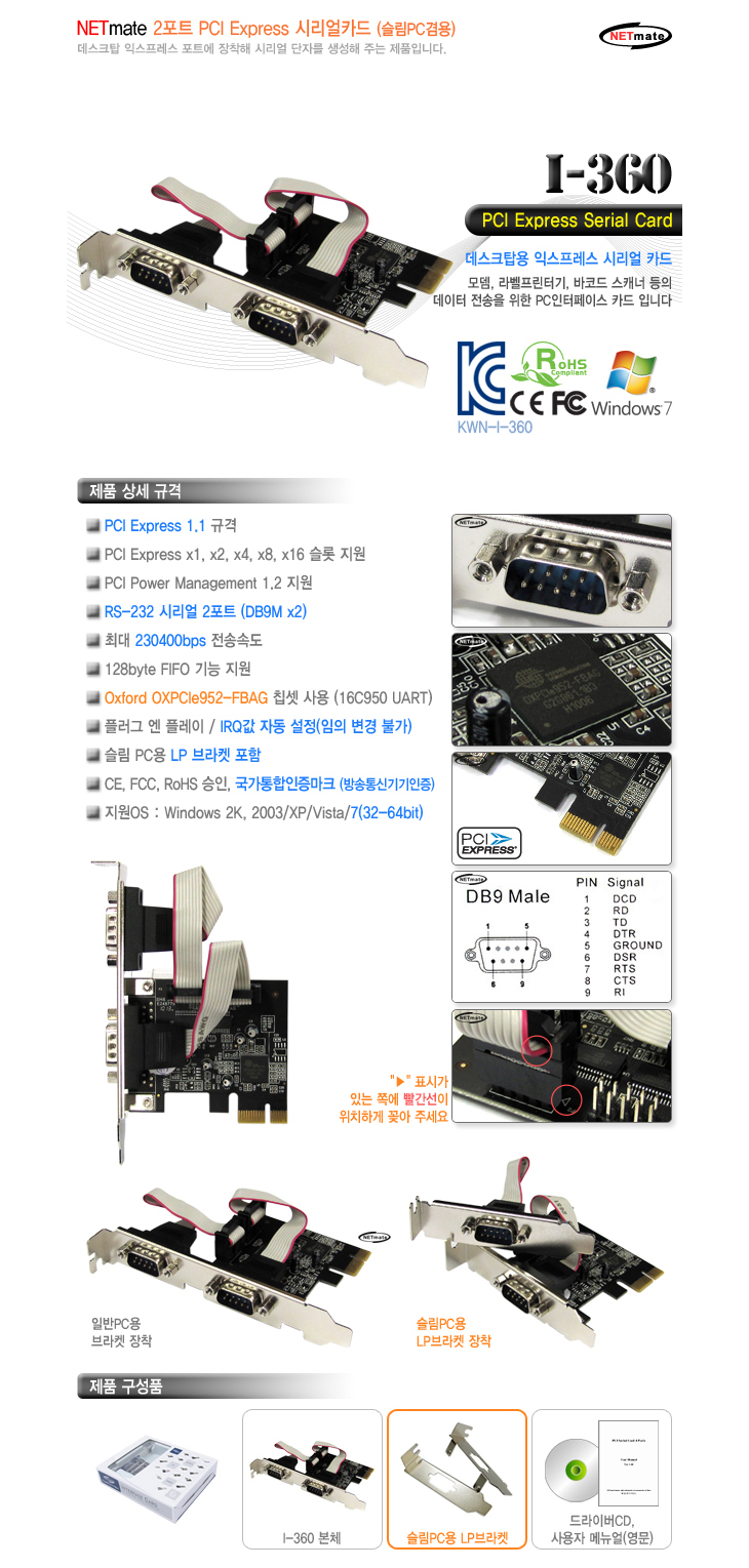 [³Ý¸ÞÀÌÆ®/KW] NETmate RS-232C 2Æ÷Æ® PCI Express ½Ã¸®¾óÄ«µå(I-360, Oxford, ½½¸²PC°â¿ë)=>Á¦Ç°´ÜÁ¾!