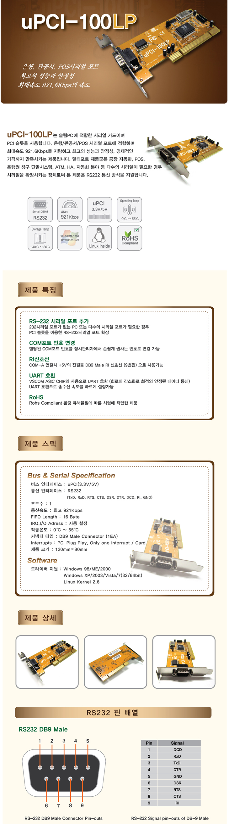 [VSCOM] RS-232C 1Æ÷Æ®(uPCI-100LP, PCIÄ«µå ¸ÖƼÆ÷Æ®, ½½¸²PC¿ë)