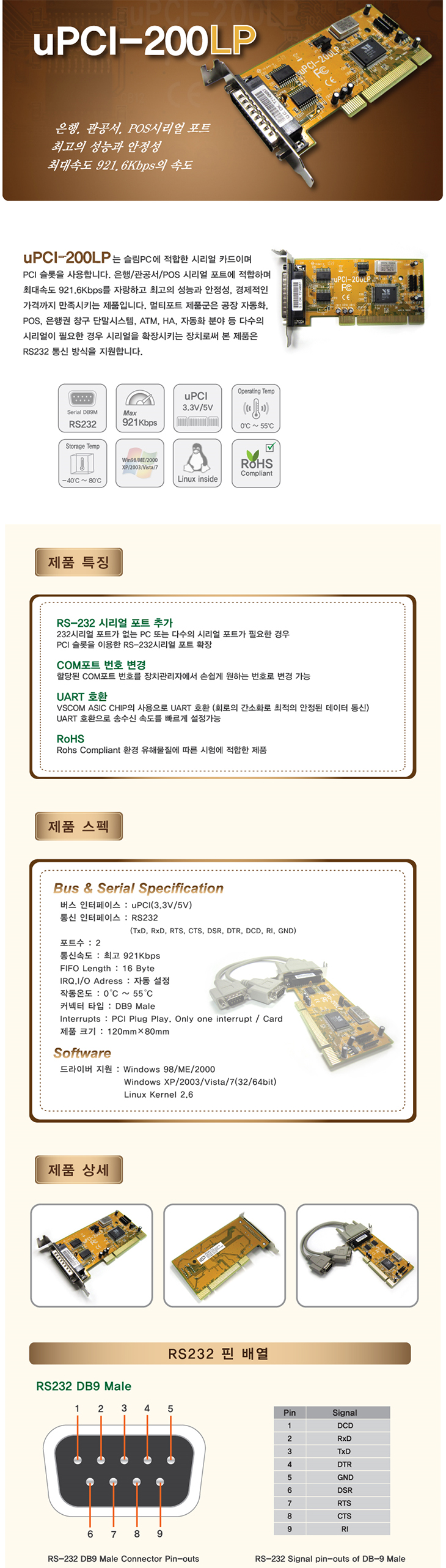 [VSCOM] RS-232C 2Æ÷Æ®(uPCI-200LP, PCIÄ«µå ¸ÖƼÆ÷Æ®, ½½¸²PC¿ë)