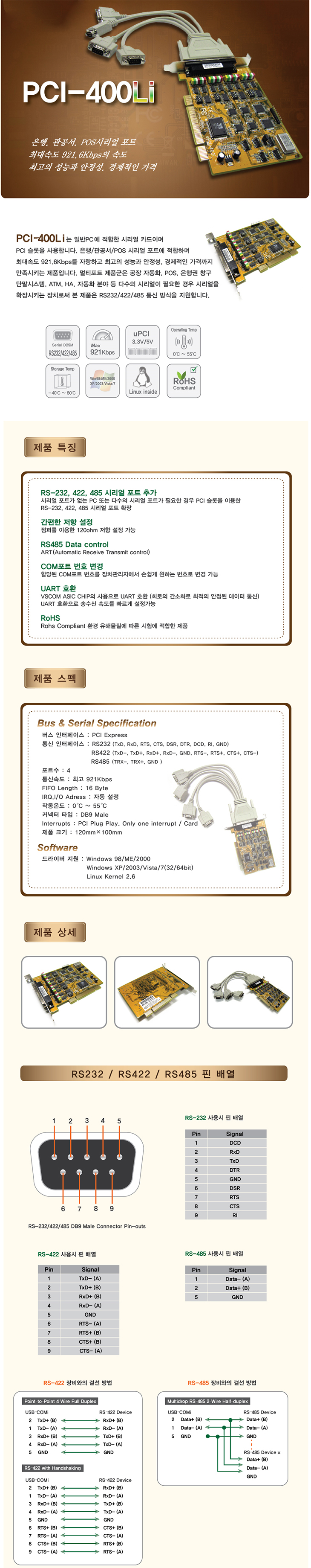 [VSCOM] RS-232C/422/485 4Æ÷Æ®(uPCI-400Li, PCIÄ«µå ÄÉÀ̺íŸÀÔ ¸ÖƼÆ÷Æ®)