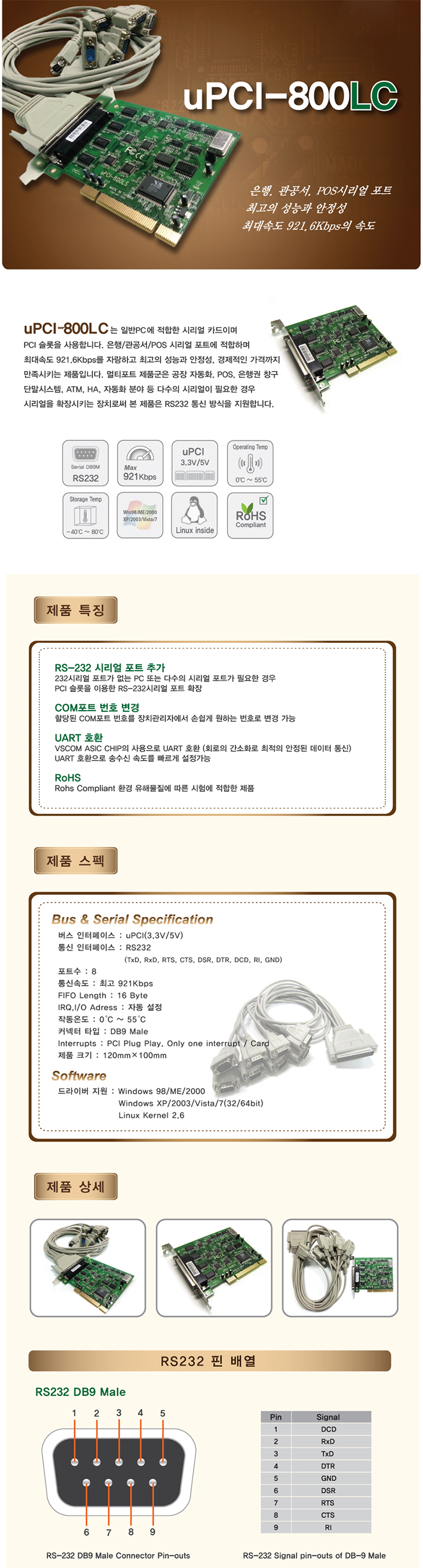 [VSCOM] RS-232C 8Æ÷Æ®(uPCI-800LC, PCIÄ«µå ÄÉÀ̺íŸÀÔ ¸ÖƼÆ÷Æ®)