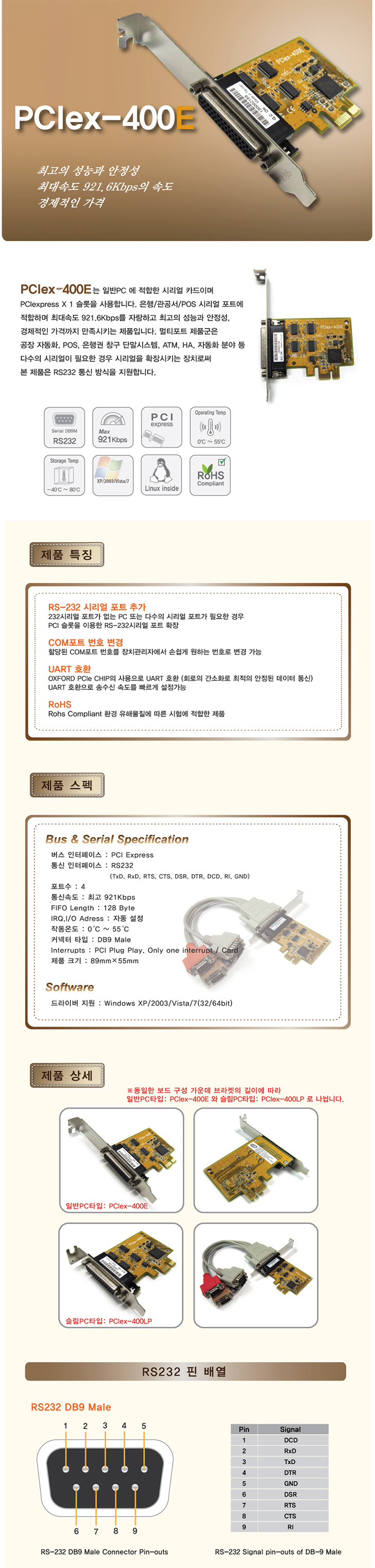 [VSCOM] PCI Express RS-232C 4 Æ÷Æ®(PCIex-400E, ÄÉÀ̺í ŸÀÔ ¸ÖƼÆ÷Æ®)