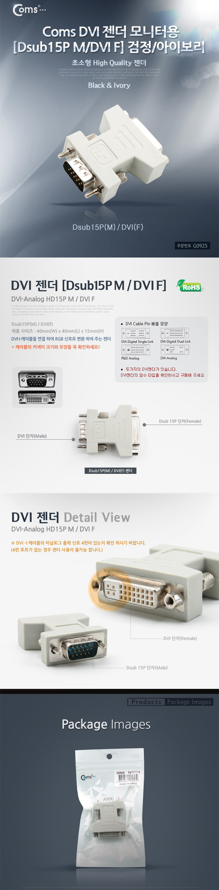 [COMS] DVI Á¨´õ ¸ð´ÏÅÍ¿ë(G0925, Dsub15P M/DVI F)
