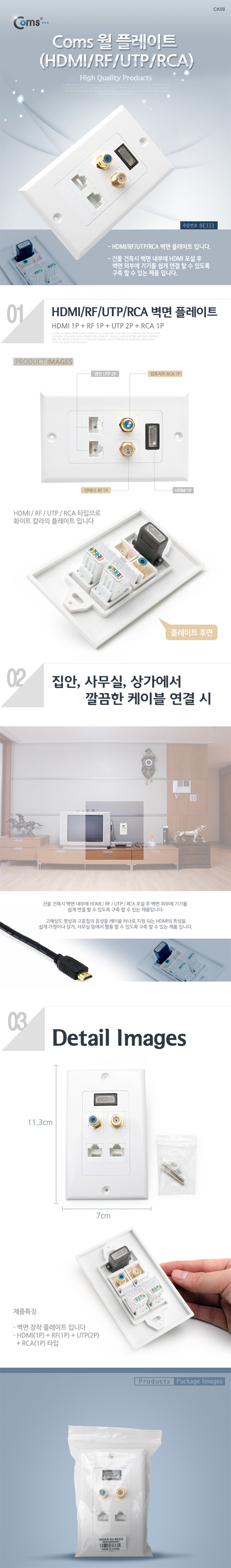 [COMS] ¿ù Ç÷¹ÀÌÆ®(BE333, HDMI/RF/UTP/RCA)(Wall Plate)