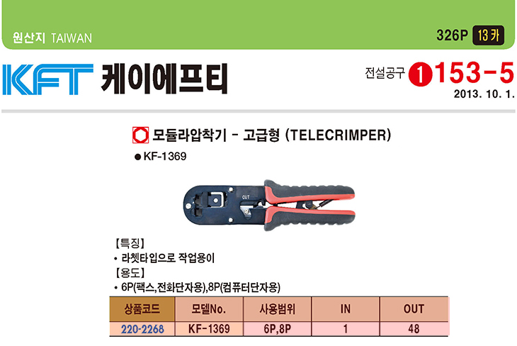 [KFT] ¸ðµâ·¯¾ÐÂø±â(KF-1369, 6P:ÆÑ½º/ÀüÈ­±â¿ë, 8P:ÄÄÇ»ÅÍ´ÜÀÚ¿ë)(MODULAR CRIMPING TOOL)