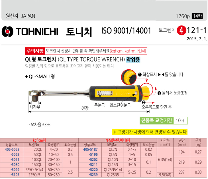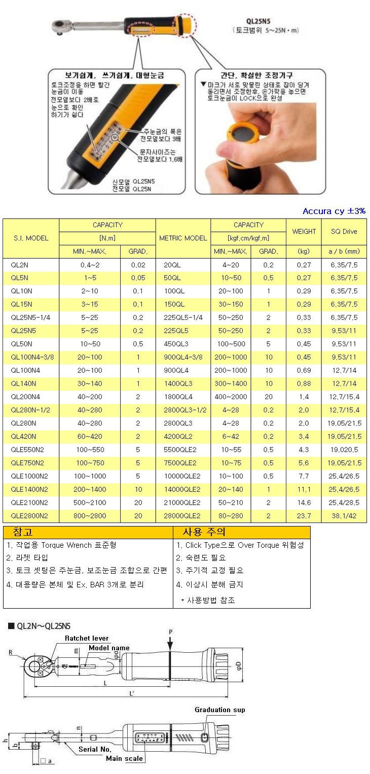 [TOHNICHI/Åä´ÏÄ¡] QLÇü ÅäÅ©·»Ä¡(225QL5/50~250kgf.cm, QL25N5/5~25NM)(Torque Wrench)