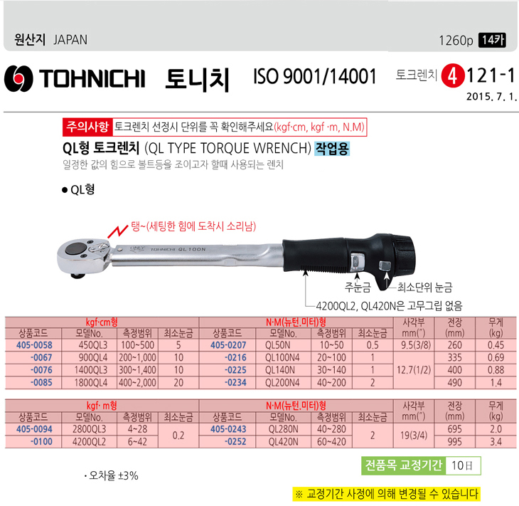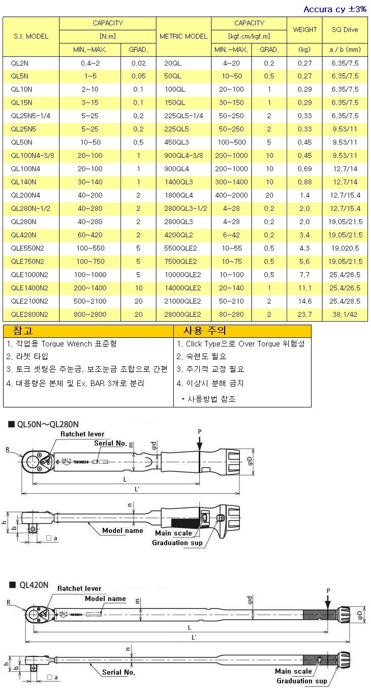 [TOHNICHI/Åä´ÏÄ¡] QLÇü ÅäÅ©·»Ä¡(1800QL4 400~2000kgf.cm/QL200N4 40~200NM)(Torque Wrench)